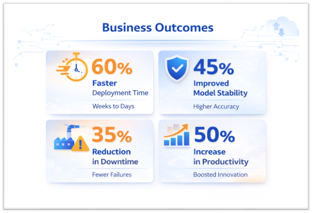 The customer was running multiple machine learning models to predict equipment failures and detect quality anomalies across plants. While the data science team had built accurate models, they struggled to operationalize them at scale.