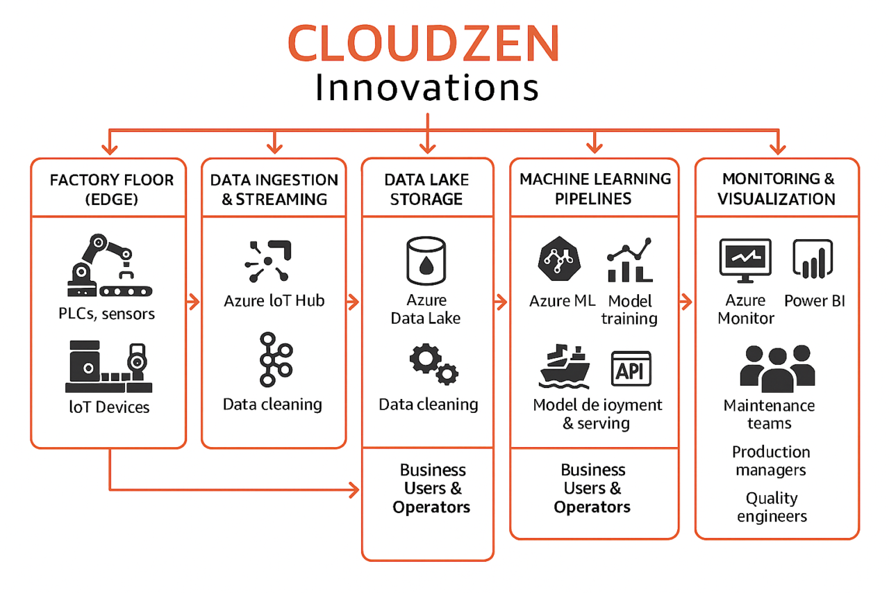 - ML models developed for predictive maintenance, yield optimization, and defect detection, trained using Azure Machine Learning.